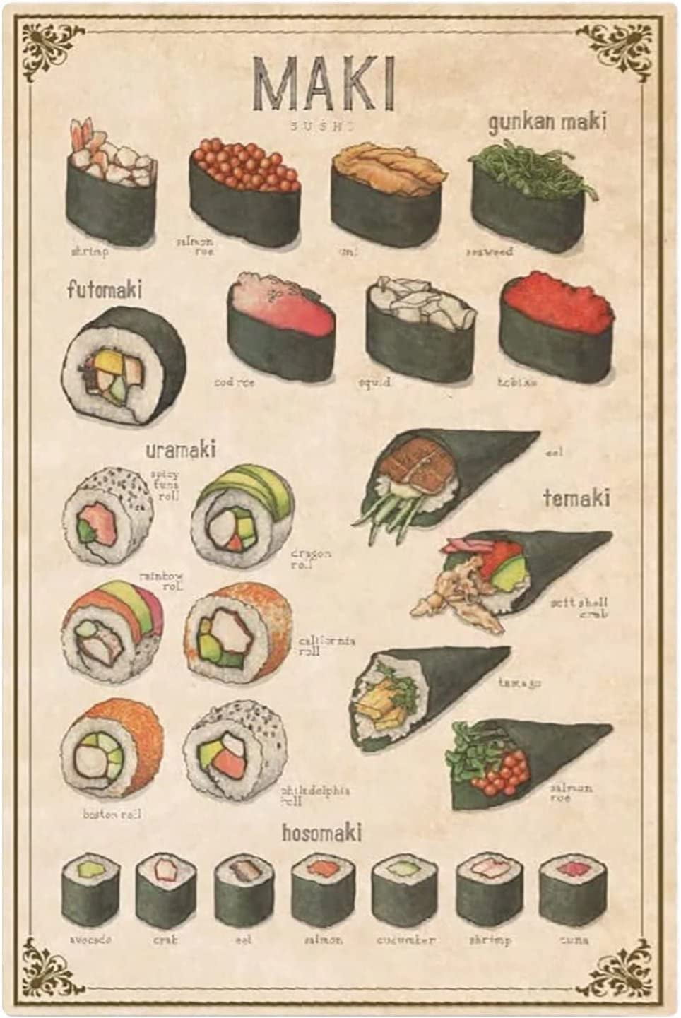 Types Of Sushi Knowledge Metal Signs Menu Wall Art Decoration Tin Posters Japanese Knowledge Restaurant Home Kitchen Bathroom Pub Diner Club School 8x12 Inches Walmart Com
